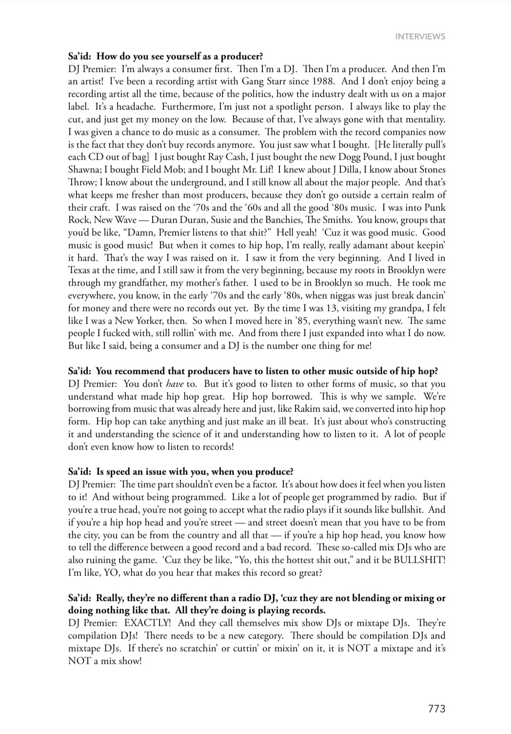 DJ Premier: I’m always a consumer first. Then I’m a DJ. Then I’m a producer. And then I’m an artist! I’ve been a recording artist with Gang Starr since 1988. And I don’t enjoy being a recording artist all the time, because of the politics, how the industry dealt with us on a major label. It’s a headache. Furthermore, I’m just not a spotlight person. I always like to play the cut, and just get my money on the low. Because of that, I’ve always gone with that mentality.